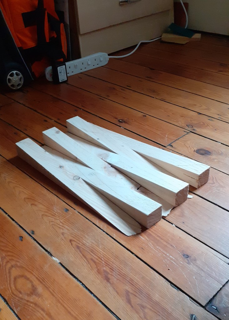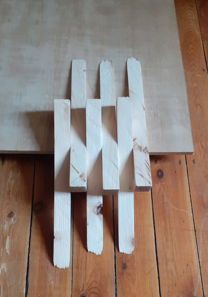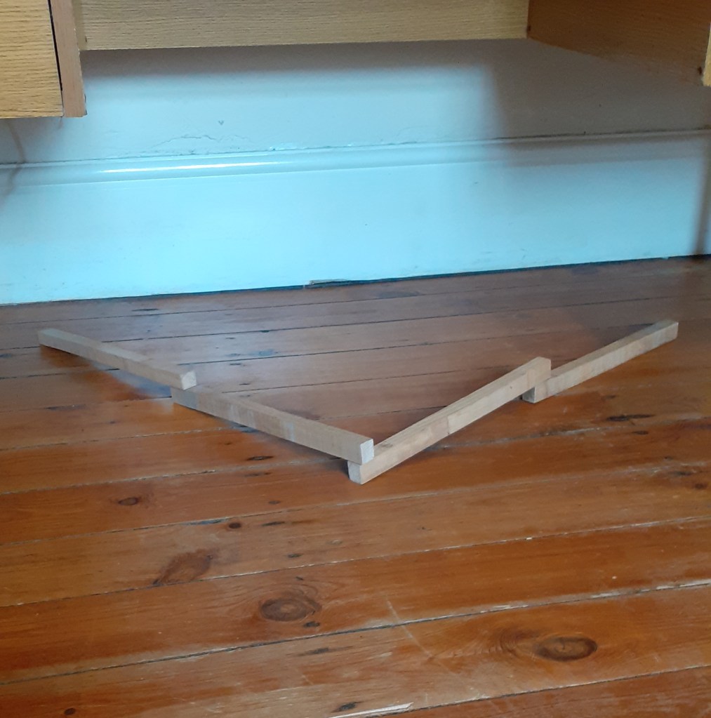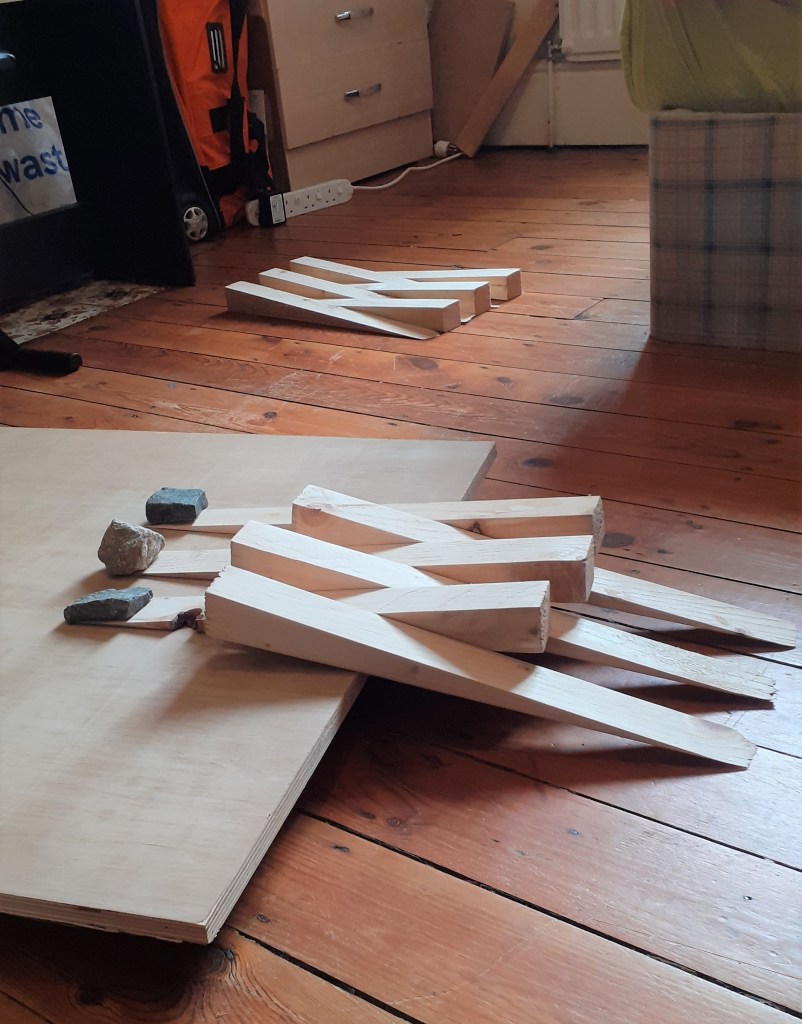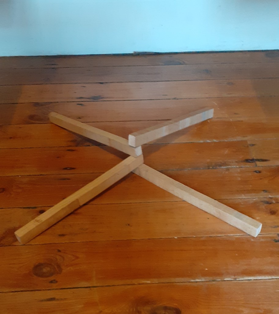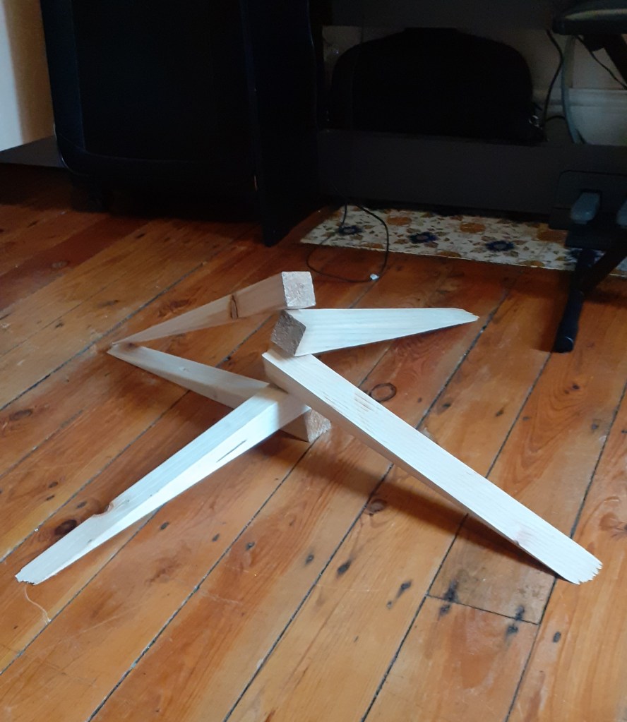 Building upon a crisscross form I had in a previous sculpture I made last week I have begun to repeat the motif in different arrangements. I would like to make some kind of movable corner piece which can fold in and out. I will talk to Joe in woodwork about this soon. I’m not sure where this will take me however I am confident once I make it will lead to something.