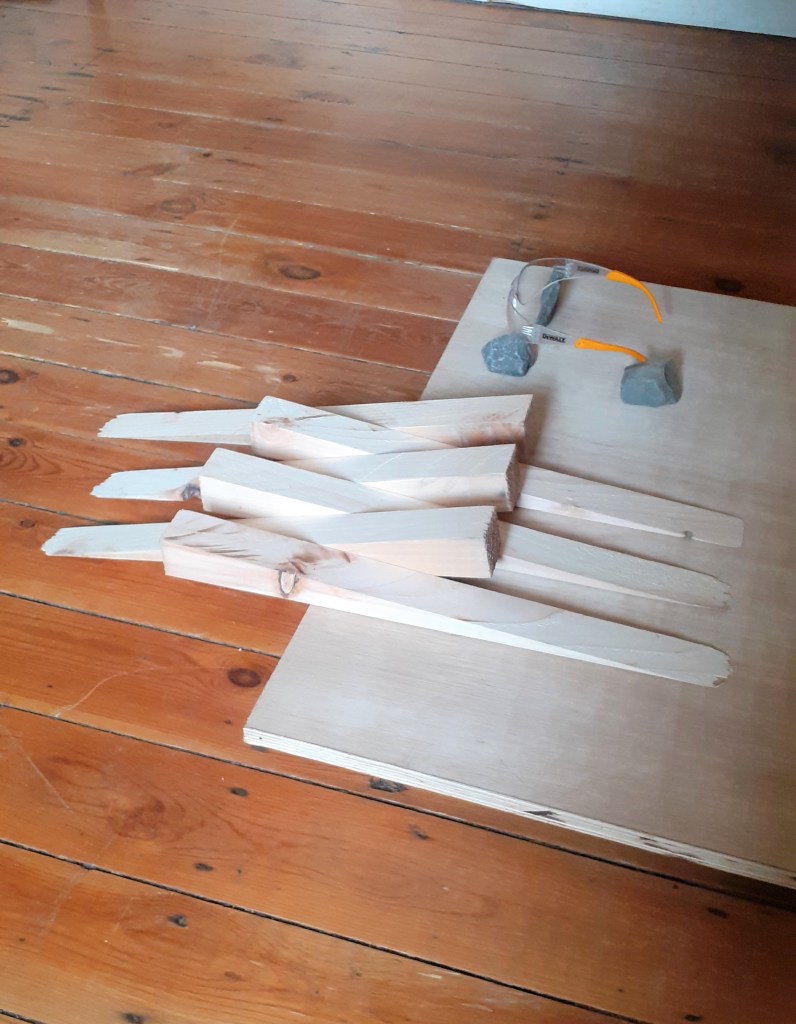 Placing the components in this corner position I also found the forms they created when allowed to collapse very satisfying. I found there were a number of good arrangements that came out of stacking the wood in various corner arrangements. I would like to make big a work where a great deal of small wooden planks are evenly stacked.
