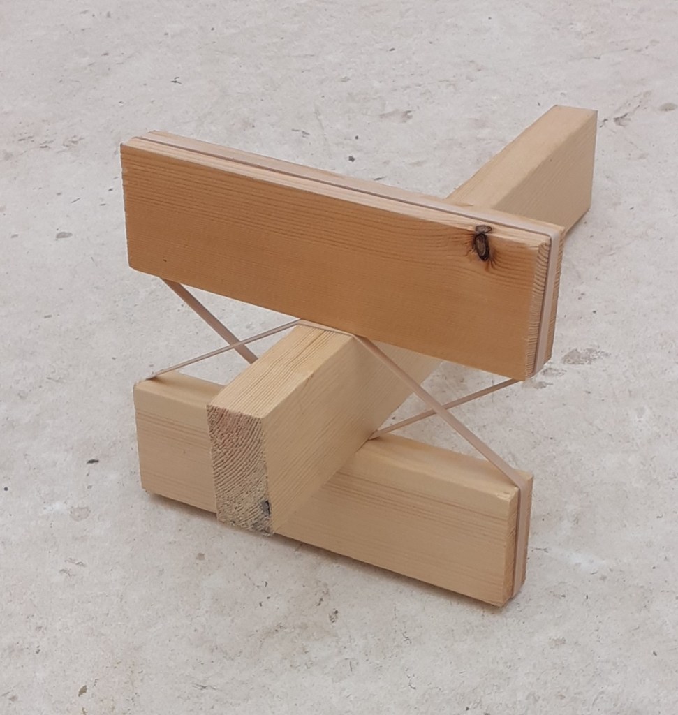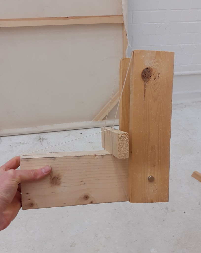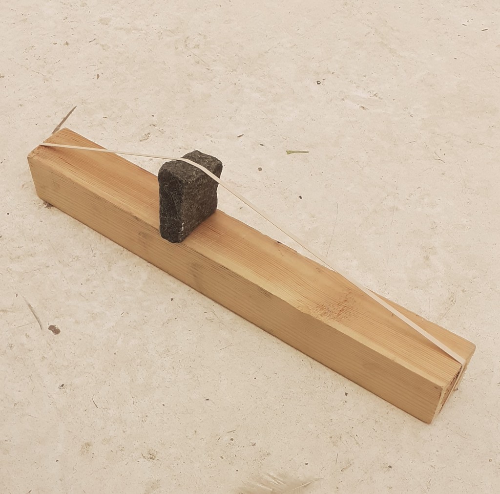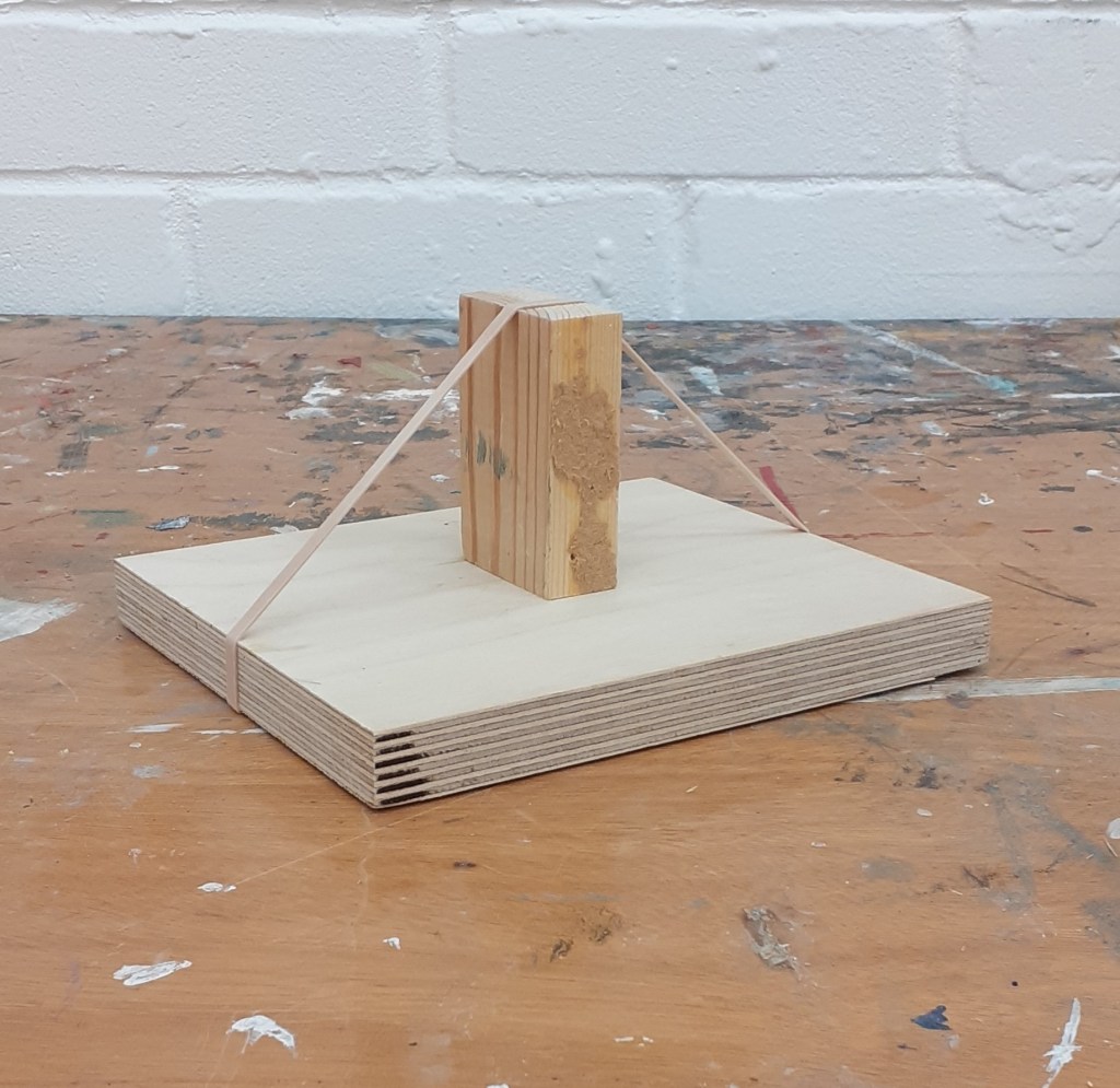 Developing on from the stone and elastic works I made at home, this week I have experimented using rubber bands with the materials within my studio, largely wood. There is something interesting about the precariousness of some of these structures, along with how this is perceived by a viewer.