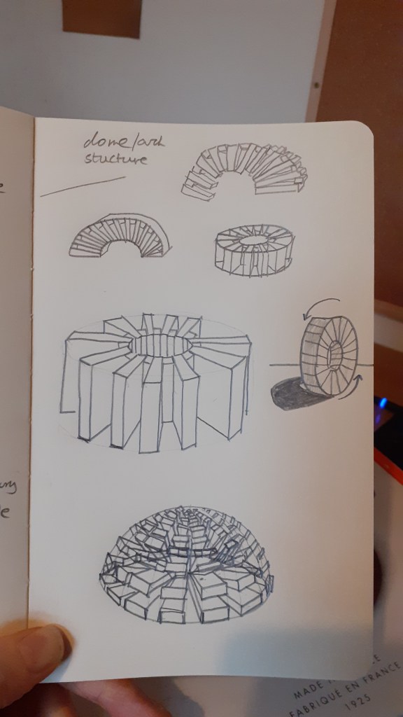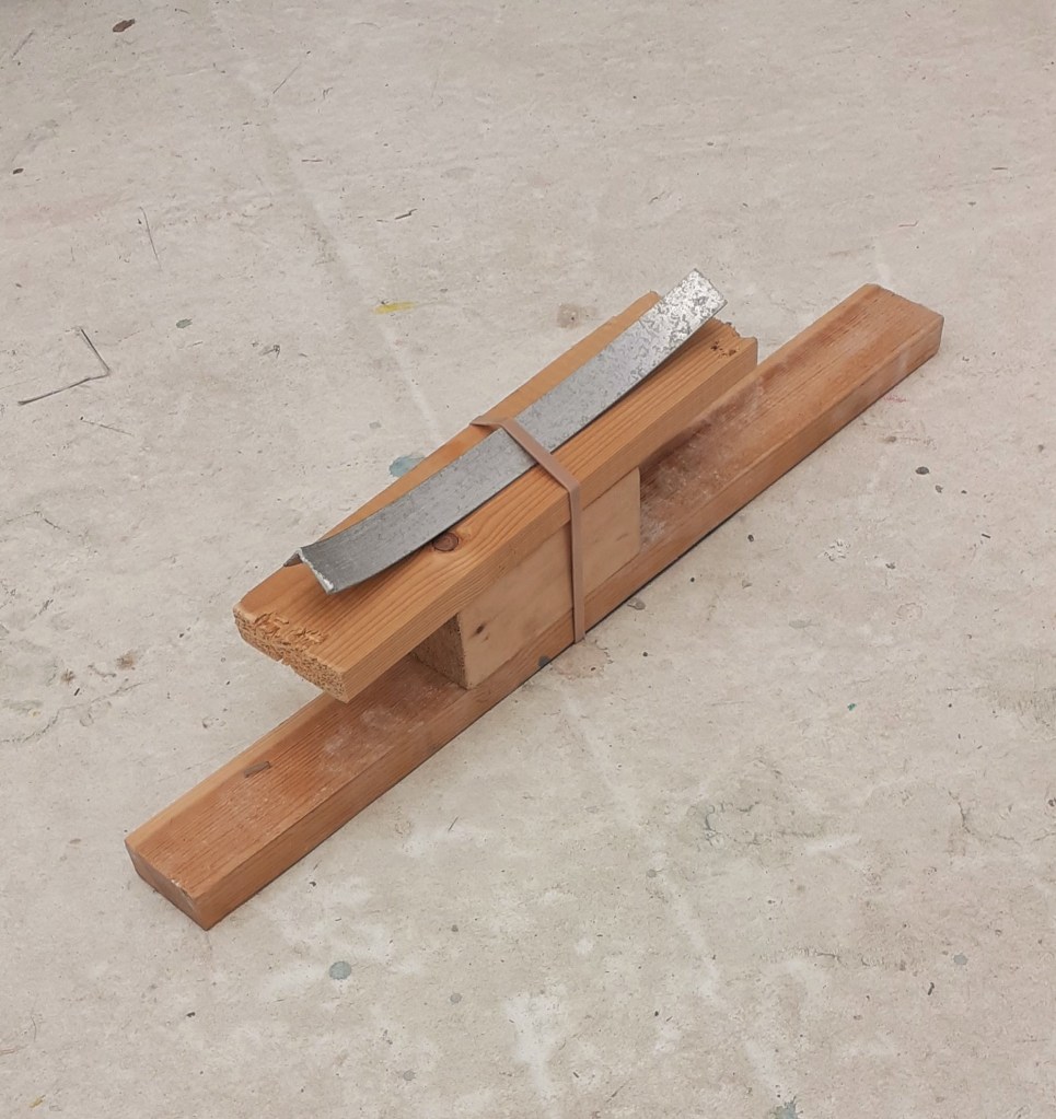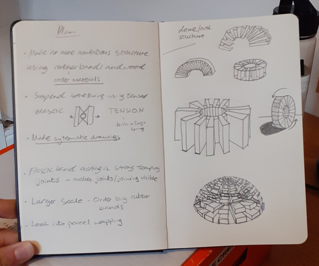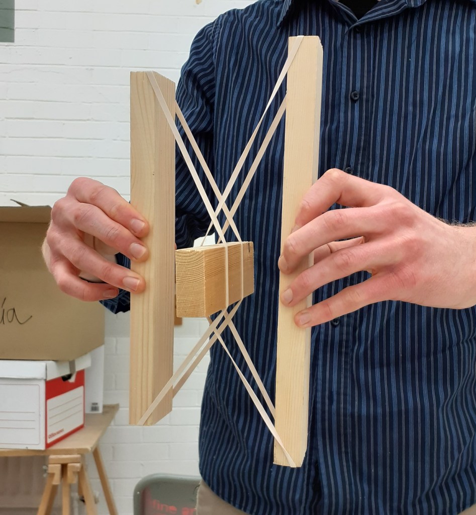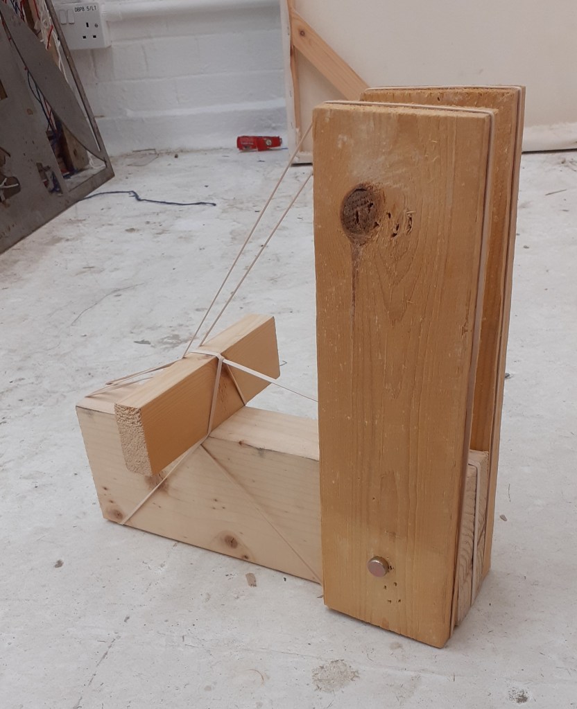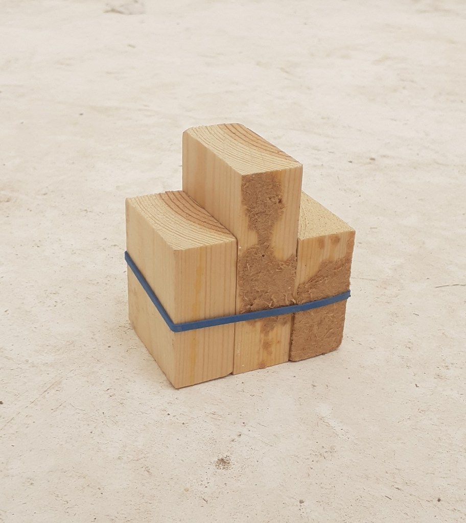 Developing on from the stone and elastic works I made at home, this week I have experimented using rubber bands with the materials within my studio, largely wood. There is something interesting about the precariousness of some of these structures, along with how this is perceived by a viewer.