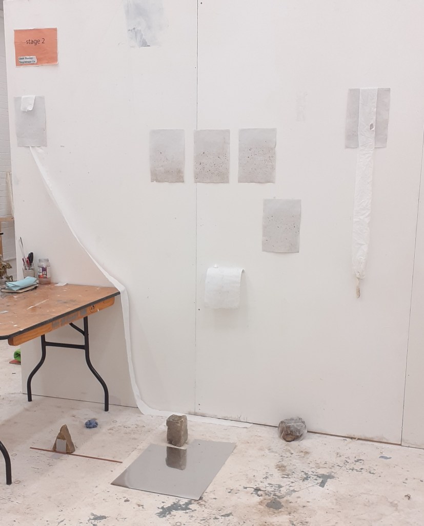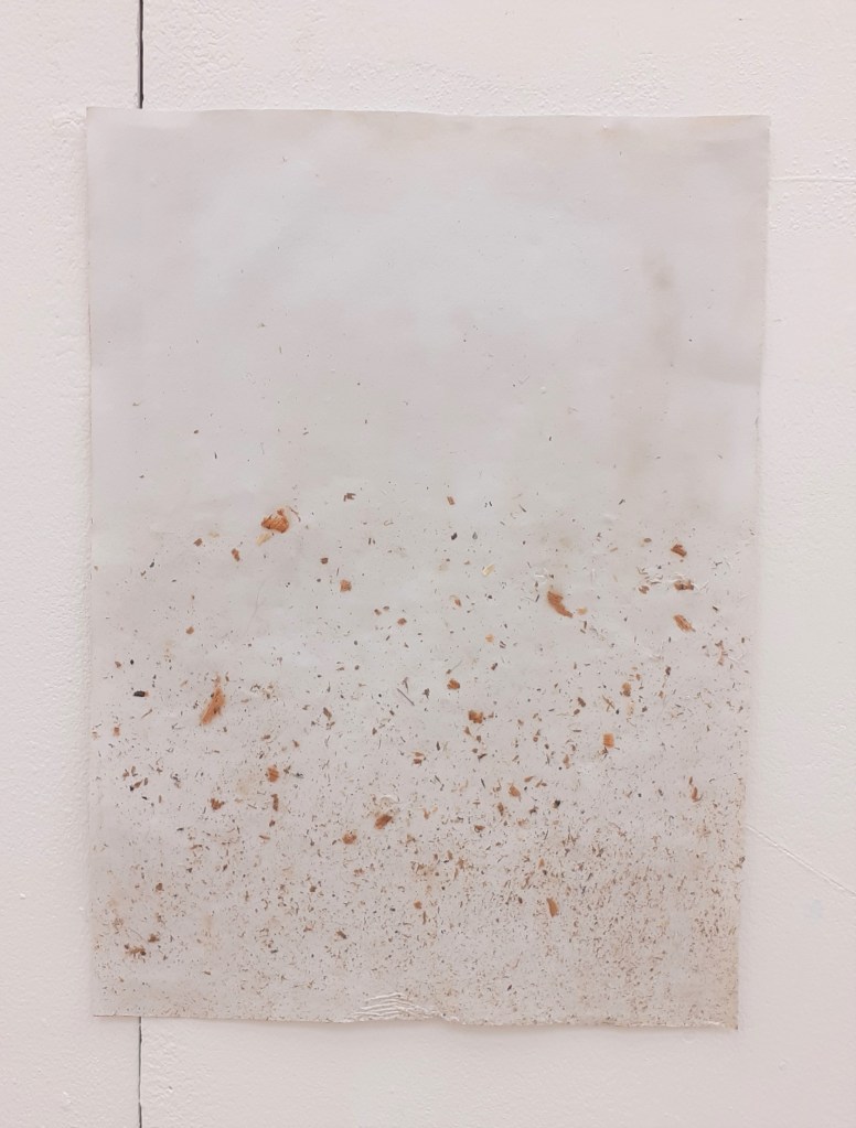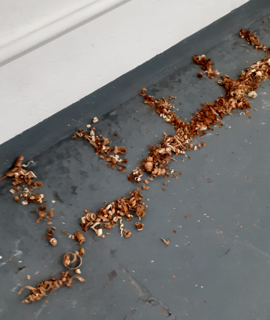 Collecting the paper I used for one of the works I made in the life room using wood shavings, I found there was a nice remnant left on many of the pages. Using these as a starting point I experimented with making wall based sculptures.