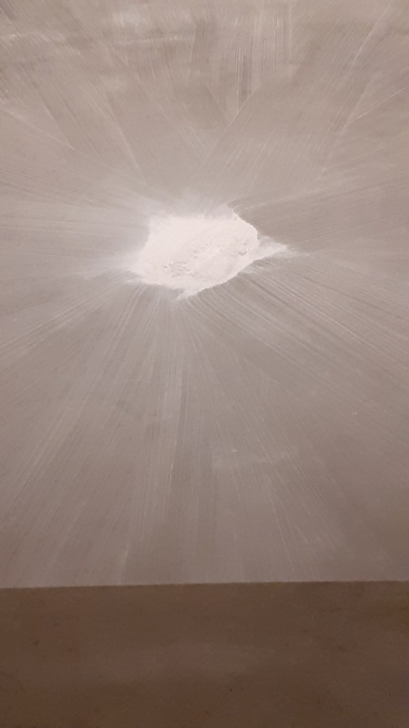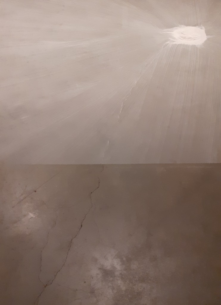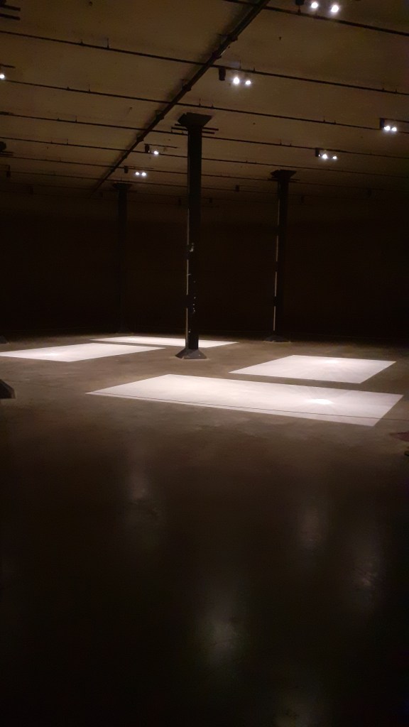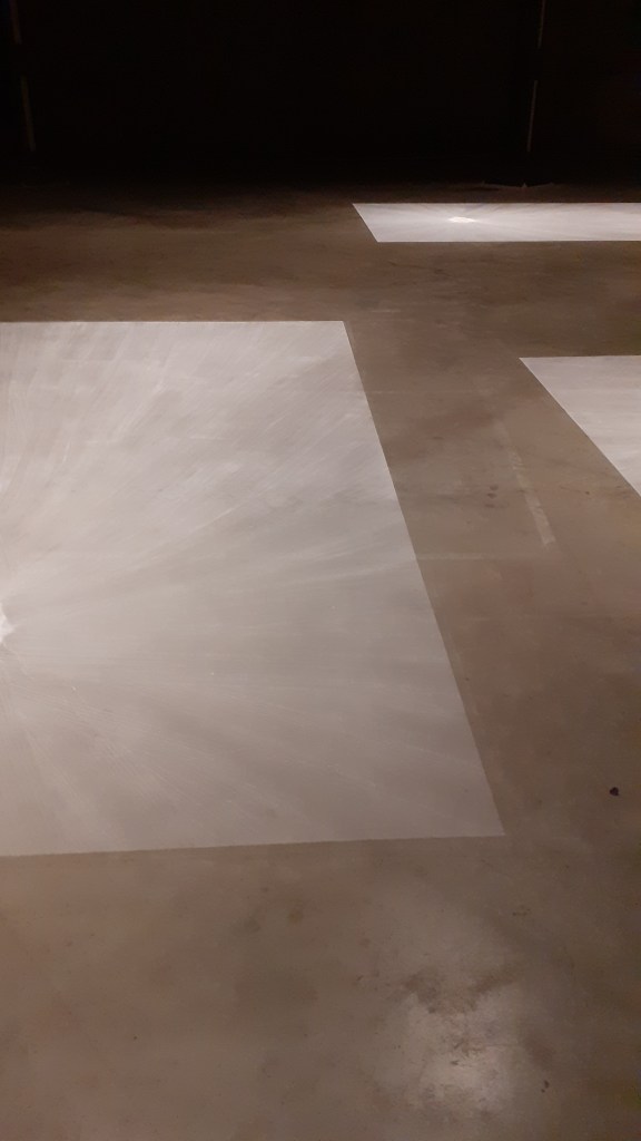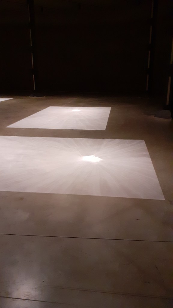 Rivane Neuenschwander, Commonplace (1999) – squares made using talcum powder brushed over the gallery floor. Executed by gallery assistants not the artist. I enjoyed the translucency of the work, the talcum powder allowing the floor beneath to be visible. This worked especially well with the concrete floor of the tanks at Tate Modern which has a number of subtle cracks. The work seemed to frame the gallery floor, brining a different awareness to it. I enjoyed how Neuenschwander played with the sensitive and tactile feelings the talcum powder evoked along with its delicate and precarious state.